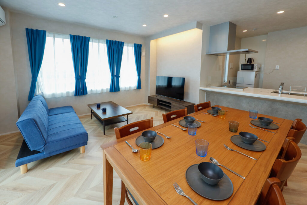 最大8まで宿泊できるお部屋もあり、リビング・キッチン・複数の寝室を完備しているため、グループでも広々と過ごせます